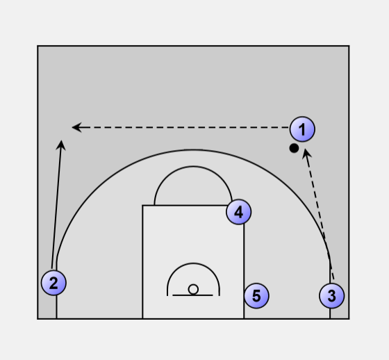 To start the set 1 passes to 2 or 3, who have made a V-cut.