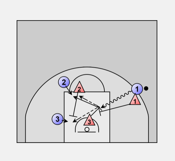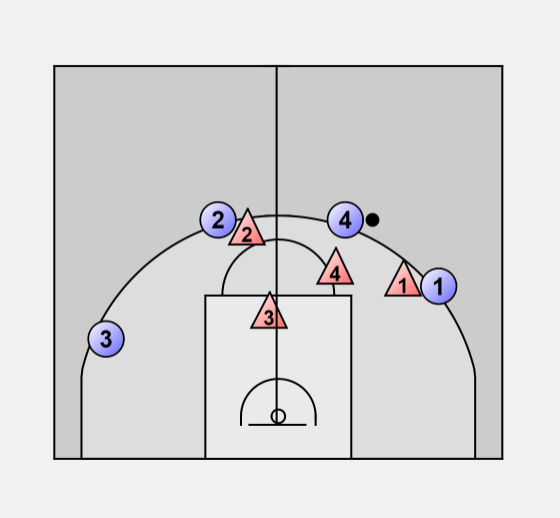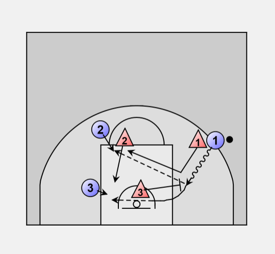 D3 must wait until pass is made before attempting the close-out. D1 and D3 then box out.