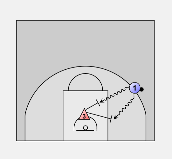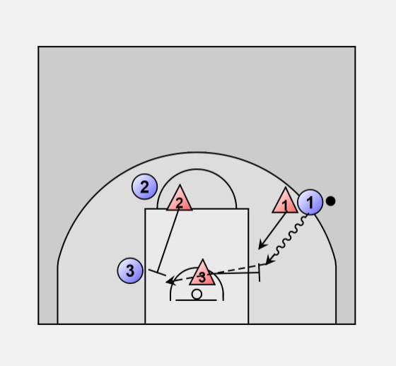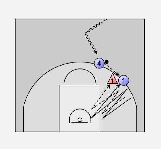 O1 should have to do an initial "V" cut, a back-cut all the way to the basket, then another cut back out to the 3-point line before he gets the ball.