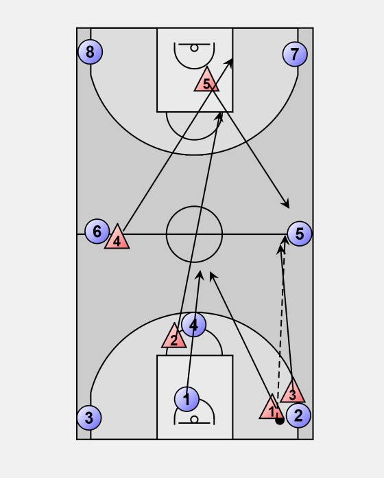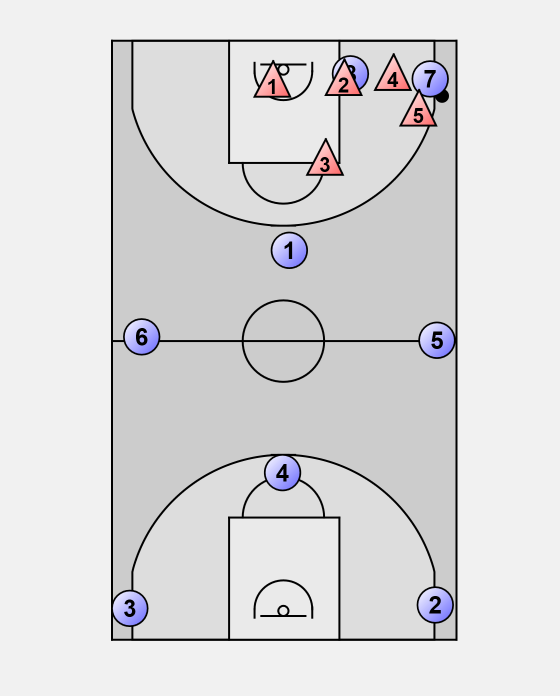 Here, we have a press (2-1-1-1) that is our main source for our points. Although this is just the main setup, it is not that different from the game!!!