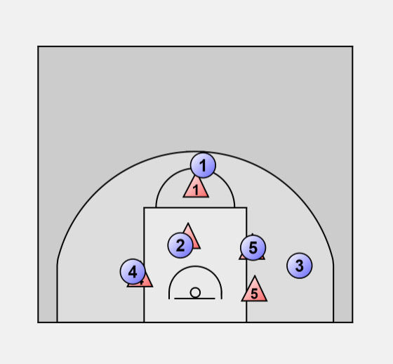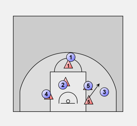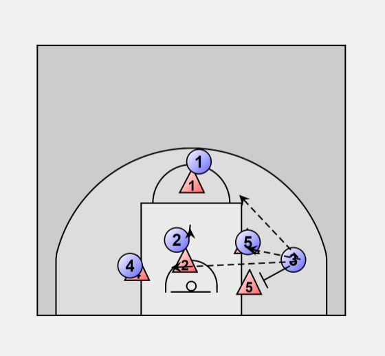 Defender no.5 can intercept the ball if passed and he can mark and stop the player from driving.