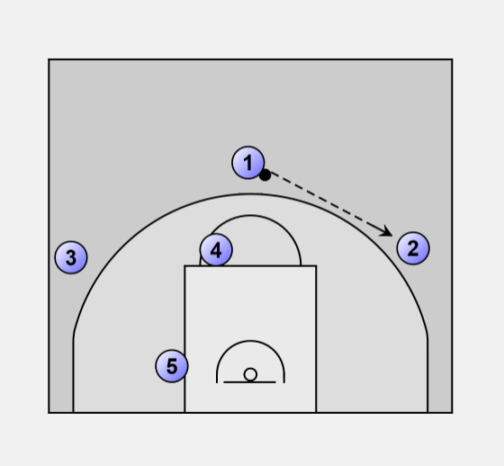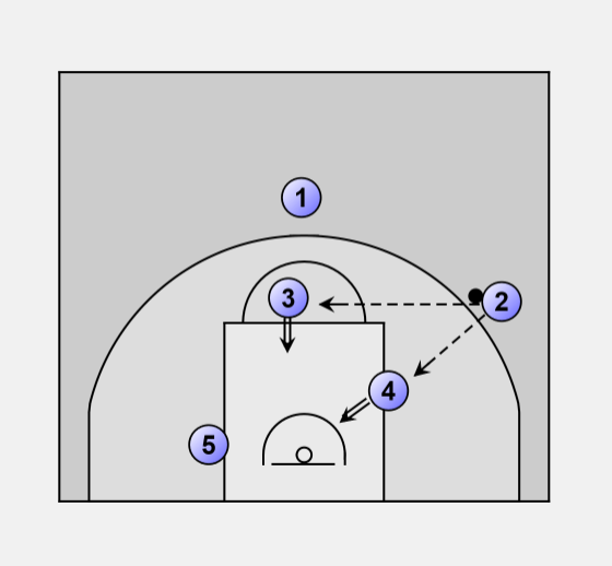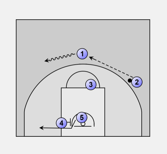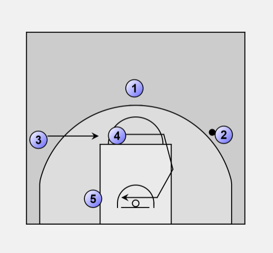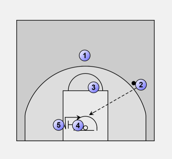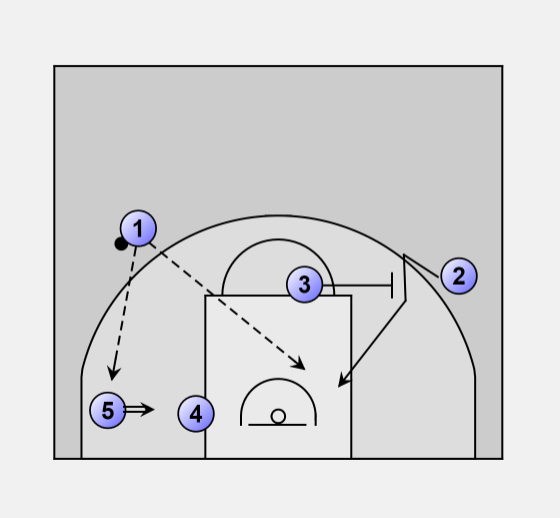 5 can shoot directly from the pass, or can play a 2-man-game with 4 at the baseline.