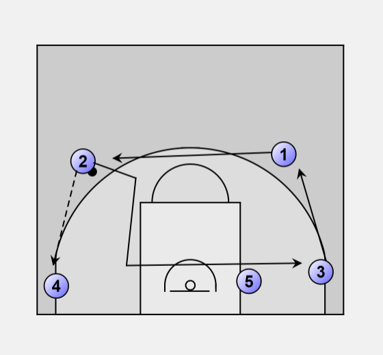 Ballscreen by perimeter players. 1 passes to 3 and then goes and sets a ballscreen pick on 7. 3 should be able to take the short jumper.