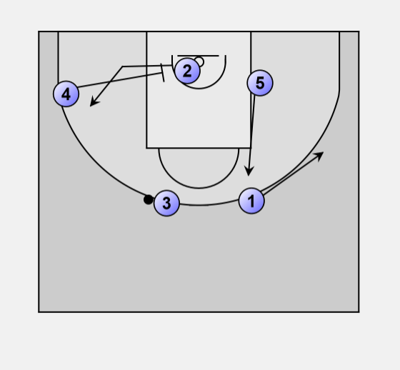 When the 3 passes to the 2, the 1 makes a cut to the basket and then up screens 5.