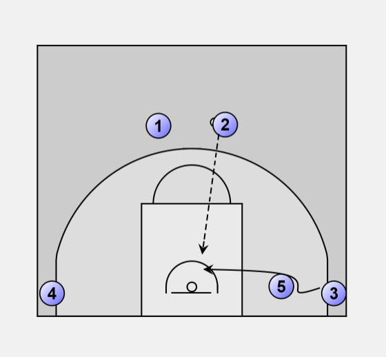 Guard to guard pass, 5 moves into position to screen 3.