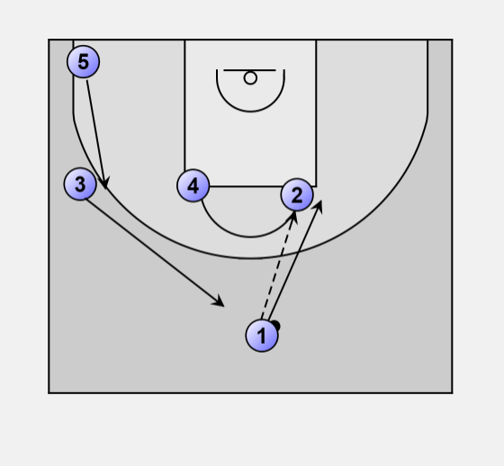 Player 1 passes the ball to 2 and goes towards the receiving player and get a hand off.