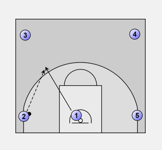 Player 1 then cuts away from the basket, toward player 3.