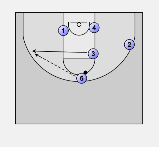 When 3 receives pass, he looks to 1 at the short corner or to 3 at the elbow.