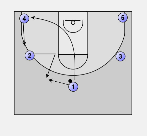 1 makes a basket cut (if open, pass), and clears out to replace 4 (4 fills in for 2).