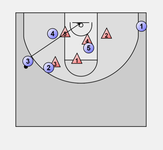 3 fakes his shot. 5 is free gets the ball and plays 1 on 1.