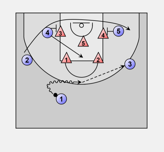 2 can also pass to 4, if open, who has flashed to the corner of the free throw line.