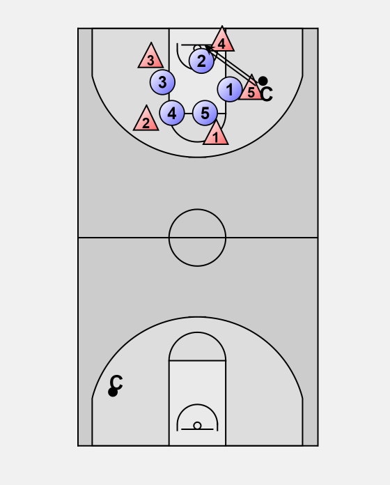 You set the players up in a circle under the basket defense walks in a circle one way while the offense walks in the opposite direction.