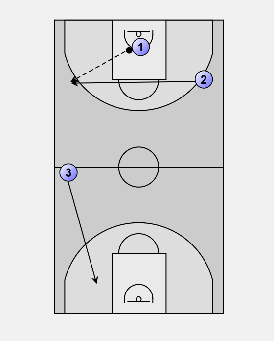Player 2 cuts straight across the floor and receives the outlet from 1.