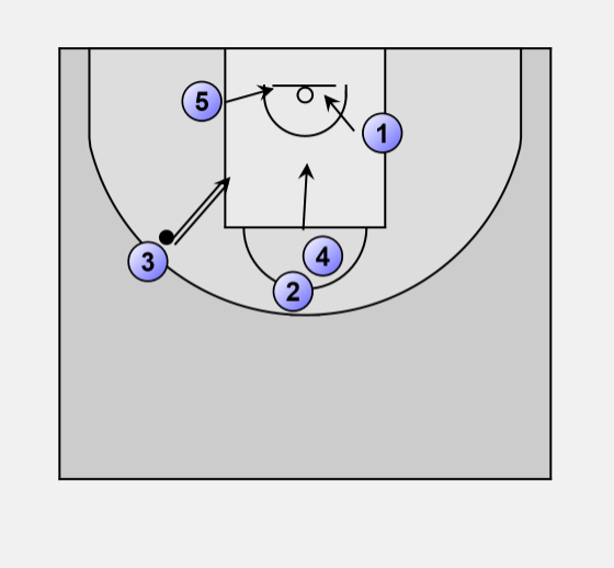 Depending on how the defense reacts 5 can pass the ball back to 2.